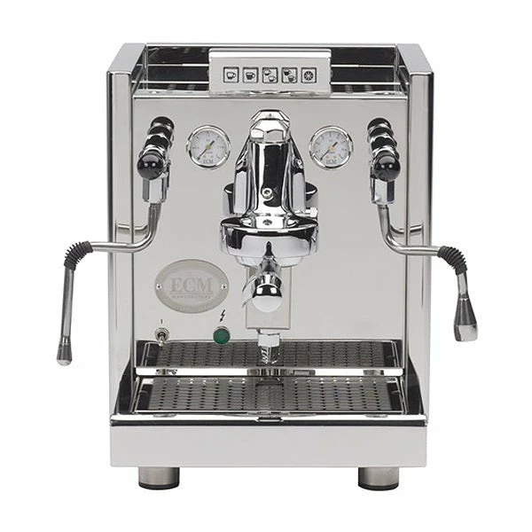 - 2 ergonomically angled ECM portafilters with weight-balanced shape