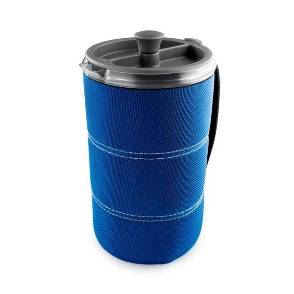 Double-walled, insulated lid and ballistic nylon-wrapped cozy hold in temperature while brewing and serving.