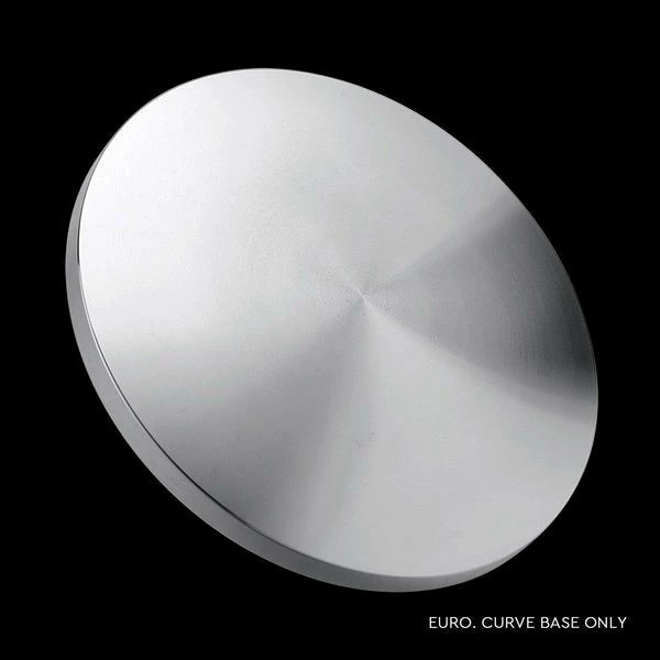 Euro Flat: Deeper edge than the C Flat, without being fully convex like curved tamper bases. Prevents mounding of the puck when a WDT or distributor tool is not used. Available in 58.5mm and 53.5mm sizes.